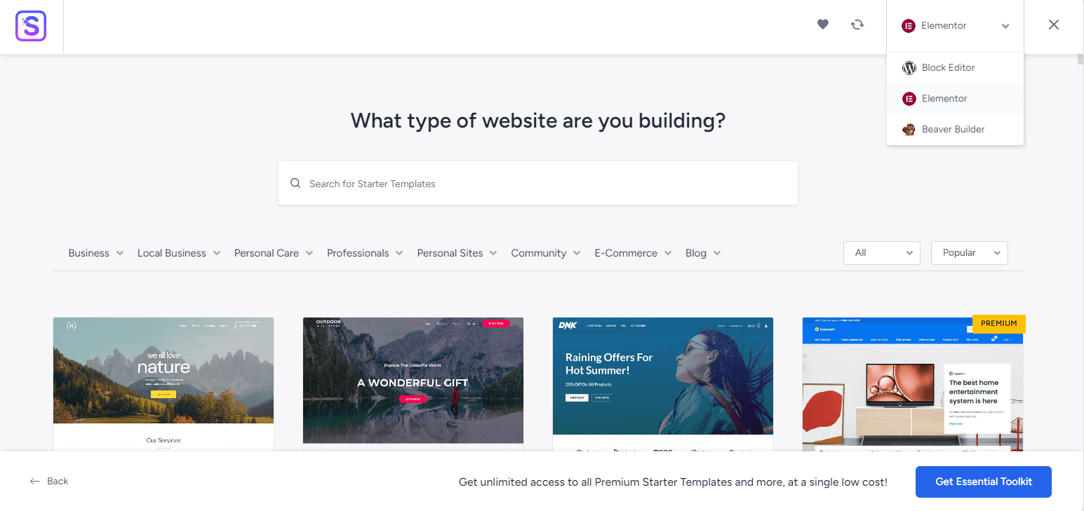 NOTE: Some of the templates are not free, and you need to buy Astra Essential Toolkit for the premium ones, not Astra Pro.