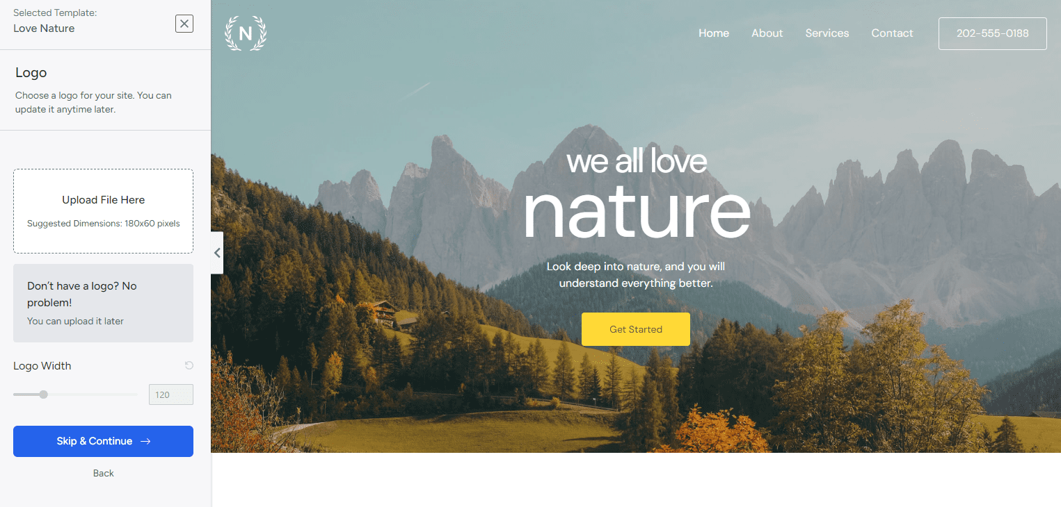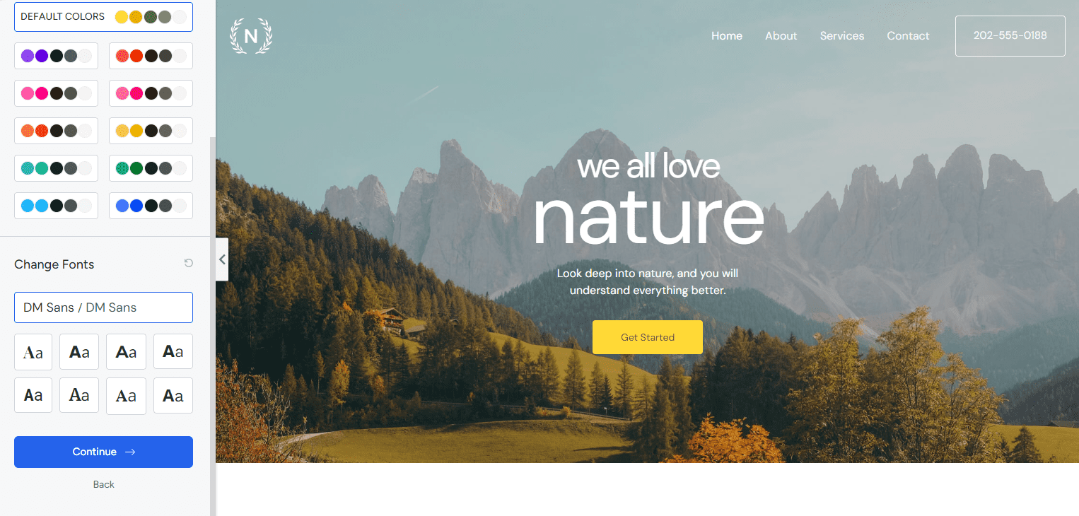 Choose the color palette and font set you like best. Don’t worry if you’re not happy with any of them because we can change these settings later.