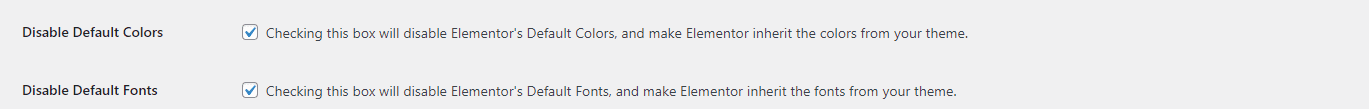 - “Checking this box will disable Elementor’s Default Colors, and make Elementor inherit the colors from your theme.”