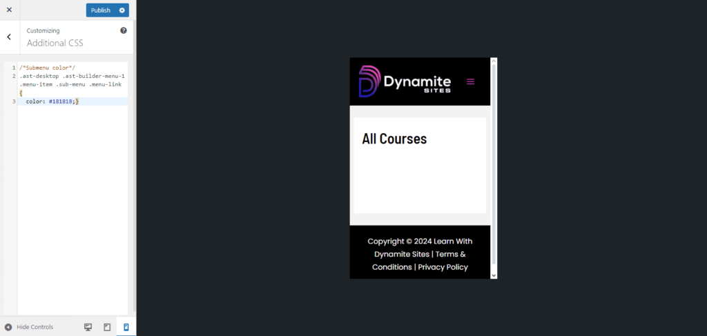 Notice at the bottom of the customizer panel that there are three icons for the different devices visitors use.