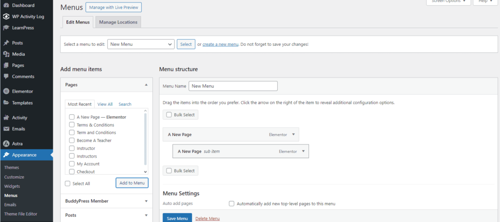 IMPORTANT: Installing the theme should have created a primary menu already, but in case you need or want to add a new menu, we’ll start from scratch.