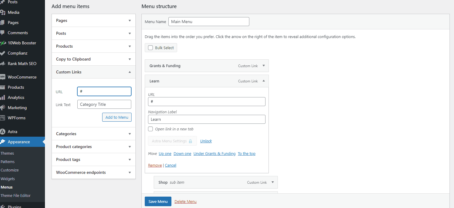 As you can see in the image below, the primary menu item in the Main Menu, “Learn” is not a link. It’s just a title to categorize all the submenu items below it.