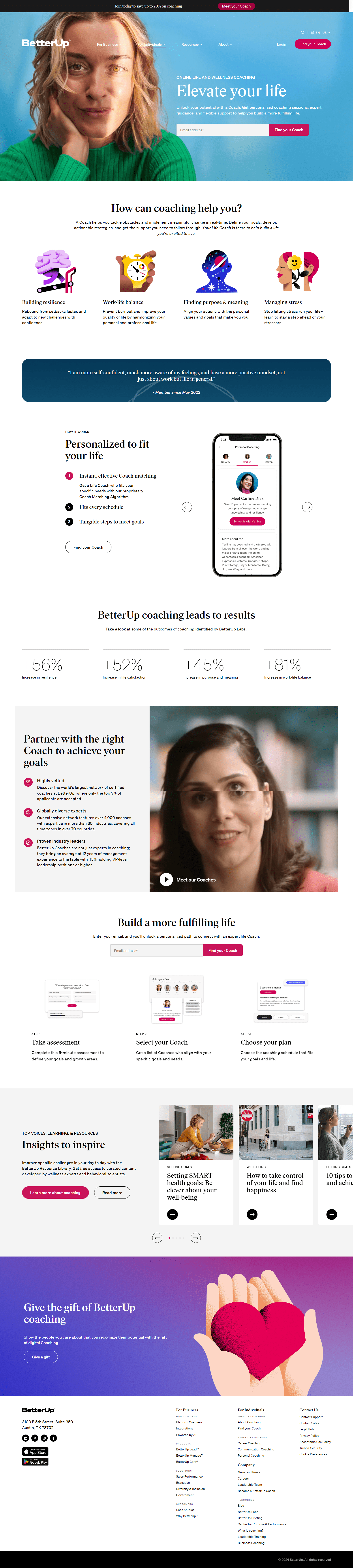 BetterUp, a professional coaching and development platform for companies, made $175 million in revenue in 2022, so we can definitely learn some lessons from this landing page design.