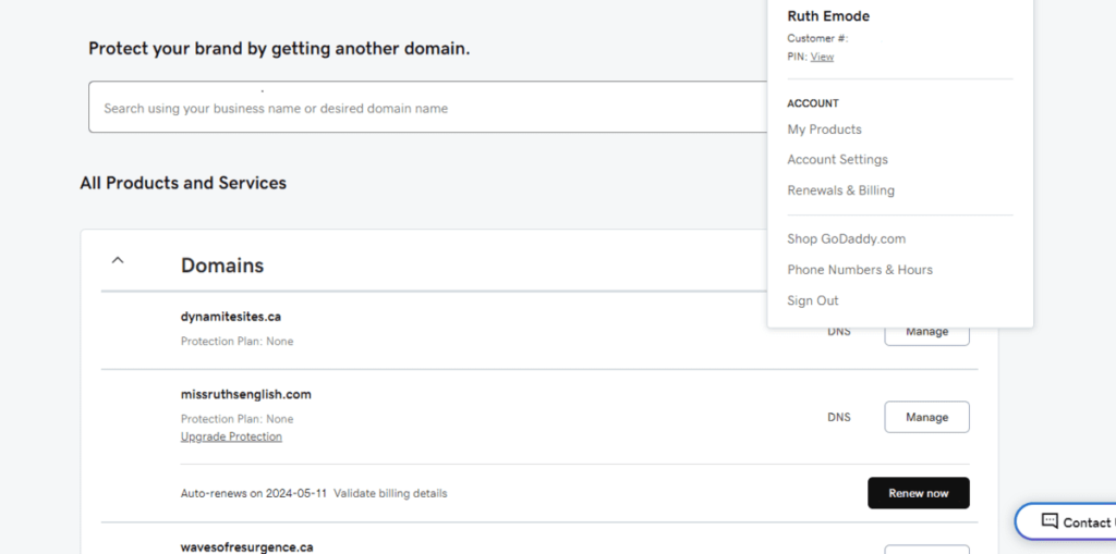 You can also find settings to manage your domains or professional email accounts.