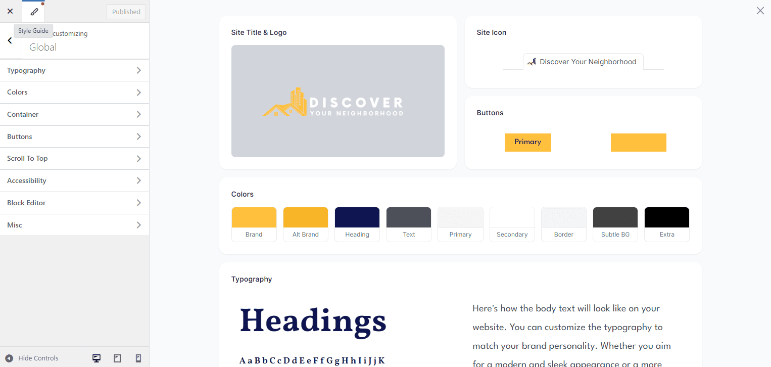 IMPORTANT: Astra has added a Style Guide area to help with understanding, setting, and previewing all your branding for your website.